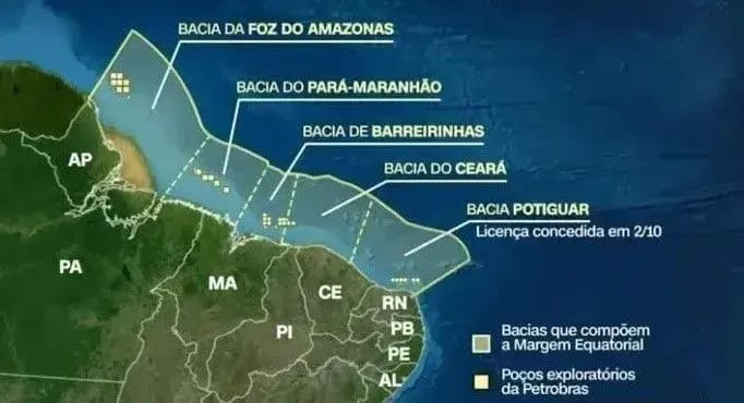 A inspiração veio da vizinhança: A Guiana descobriu 11 bilhões de barris com a Exxon e vai produzir quase 1 milhão de barris por dia até 2027. Como a geologia é similar, o Brasil quer sua fatia.